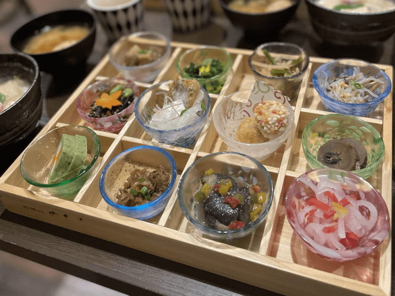 おばんざいの内容は鯛茶漬けとは違う内容にしているので、ご夫婦やカップル、お友達と2メニュー頼んでシェアしても良いですね。