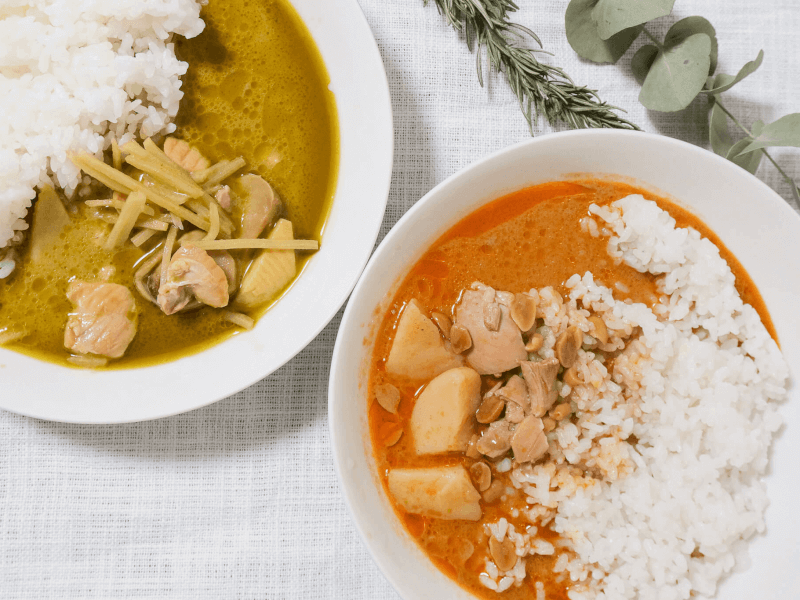 今回は比較のために白米で食べてみましたが、パラパラとしたジャスミン米にも合いそうです。