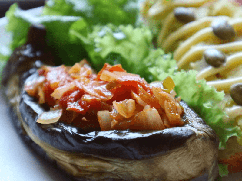 ナスにトマト、ニンニク、玉ねぎなどをたっぷり使った一品です。