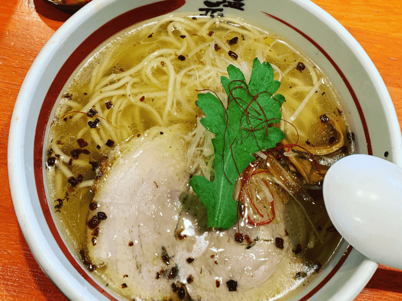 看板メニューの「天然塩ラーメン」891円(税込)はしっかりとしたコクがある旨味たっぷりスープに、ほんのり柚子皮が香る逸品。
